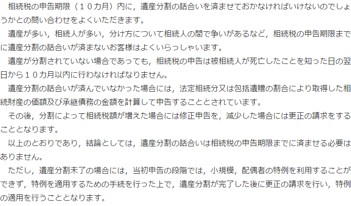 遺産分割未了の場合の相続税申告